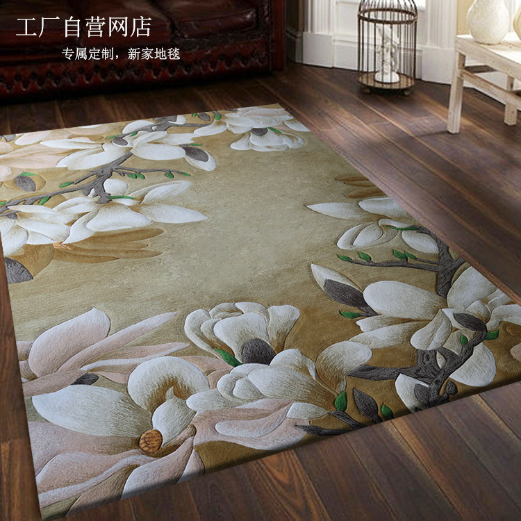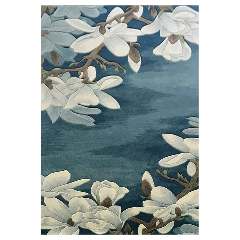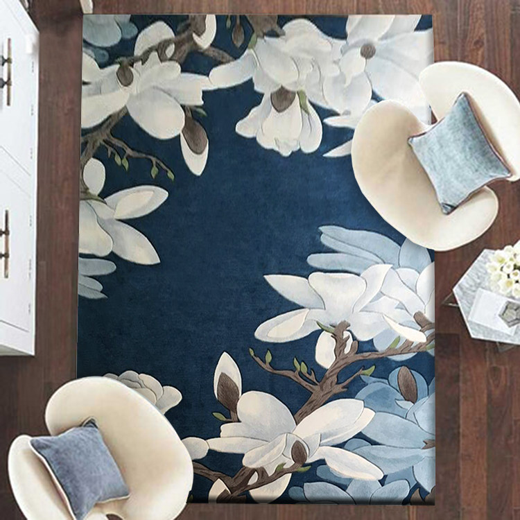Custom New Chinese Modern Chinese Style Imported Pure Wool Blue Magnolia Bedroom Home Living Room Carpet Handmade - Taobao