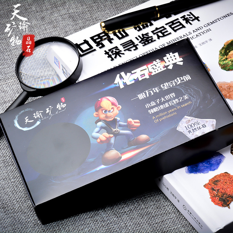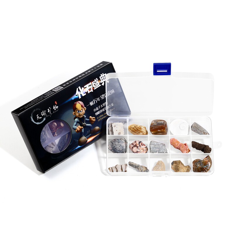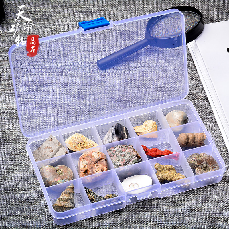 15 grid natural paleontological fossil specimen box trilobite ammonite plant conch wood jade ornament children's science popularization