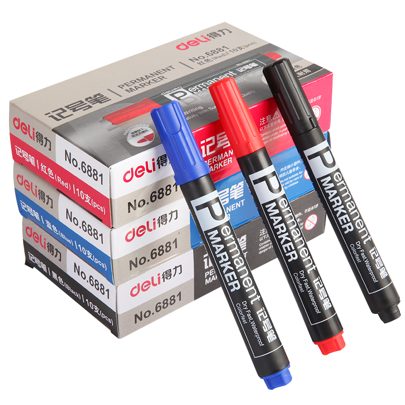 Deli stationery office supplies 6881 single head marker pen Oily logistics special packing pen hook pen Mike pen Black thick head marker Large capacity marker Quick-drying is not easy to fade