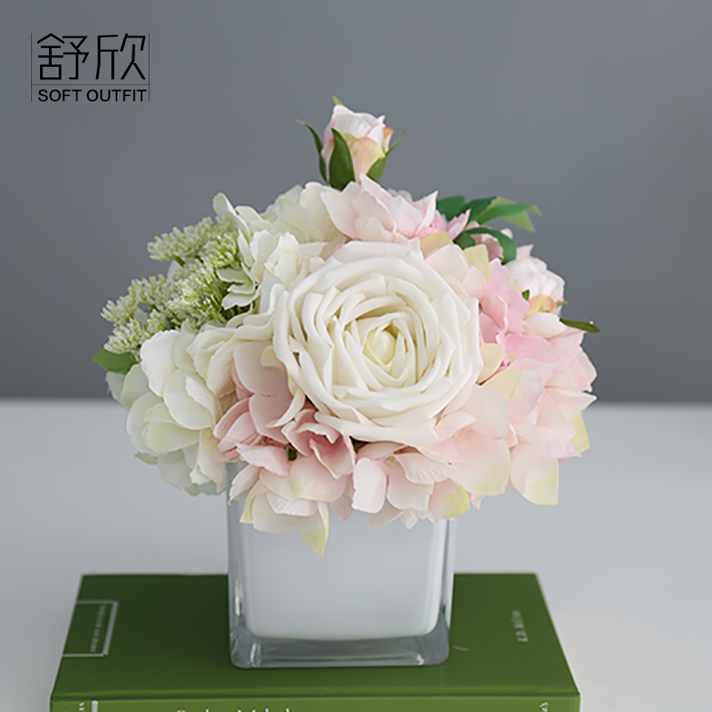 Artificial flower artificial flower silk flower rose hydrangea glass bottle set combination living room bedroom office home decoration