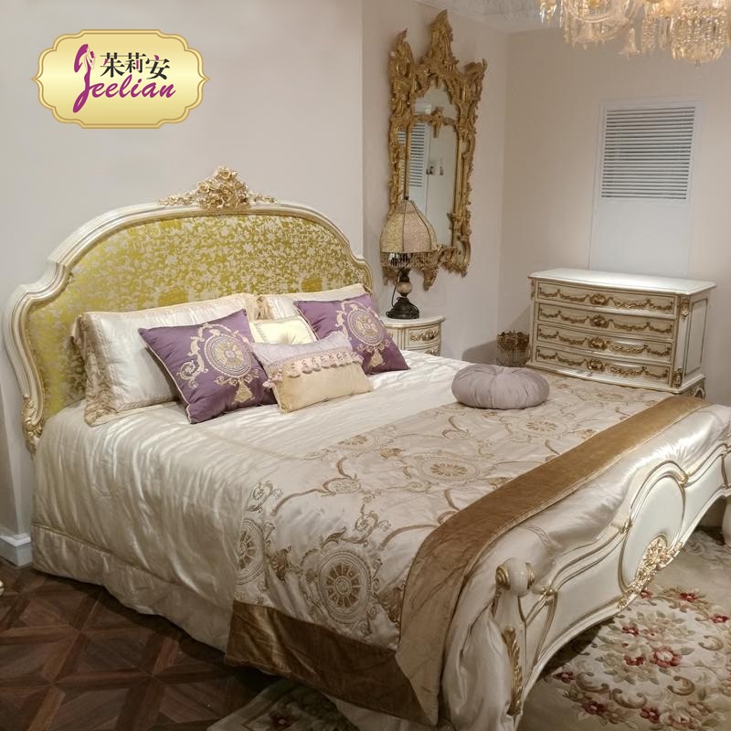 Deciduous yellow bed off-white bedside table off-white dresser off-white dresser mirror off-white chest of drawer custom tail