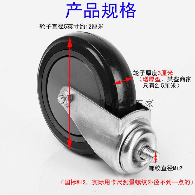5 inch supermarket shopping wheel universal wheel screw M12 caster trolley polyurethane mute universal wheel
