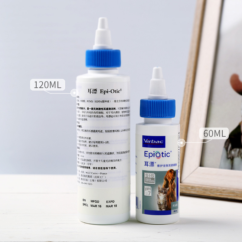 French Vic Virbac earbuds with refreshing ear shampoo Pet Ear Canal Cleanser Dog Cat Pooch Universal 125mL