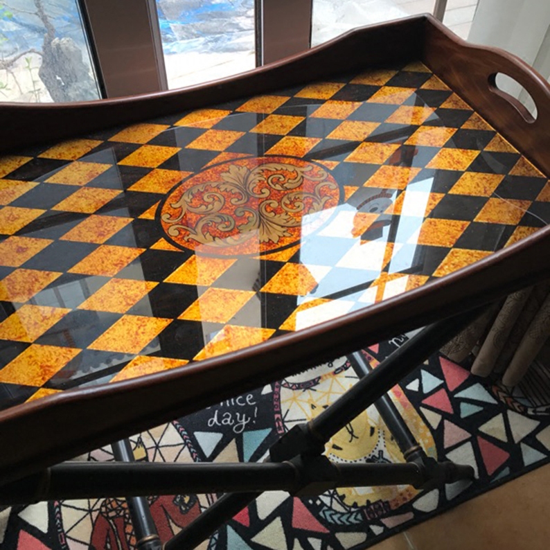 European-style corner table sofa side living room square coffee table American-style painted side table old glass retro side table small coffee table