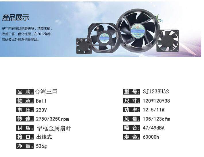 suntronix SAN JUN Taiwan trigiant heat dissipation fan SJ1238HA2 HA1 4 inch high temperature ventilator