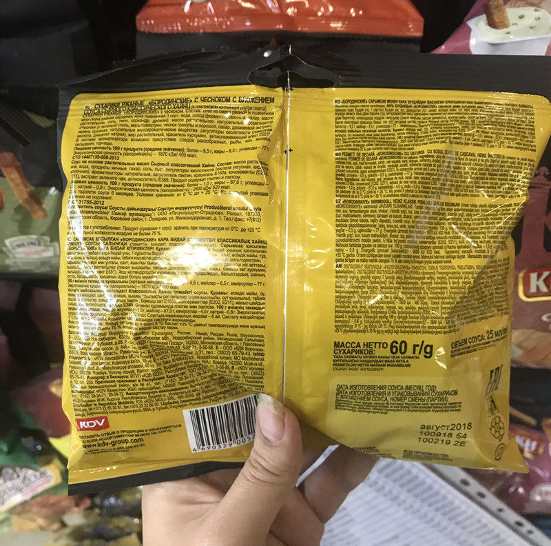 Russian supermarket to procure snacks and garlic bread dried garlic-hibiscus bread slug leba dry to send garlic sauce