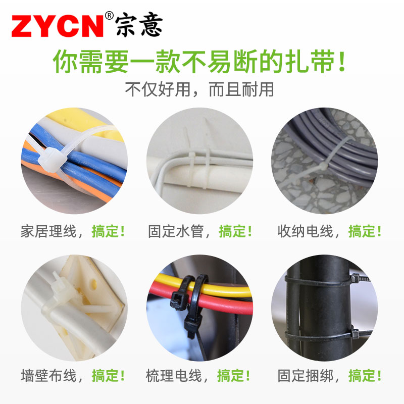 Self-locking nylon cable tie 4*200mm cable tie 500 fixed plastic strap buckle strong white