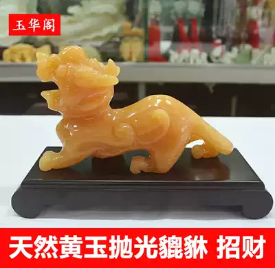 Natural Jade Topaz polished brave ornaments Zhaocai Feng Shui living room office table home decoration accessories pair