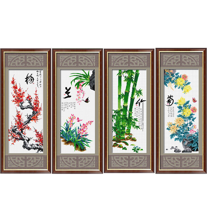 Spring cross stitch 2022 new thread embroidery plum orchid bamboo chrysanthemum four gentlemen living room quadruple hanging painting simple embroidery small