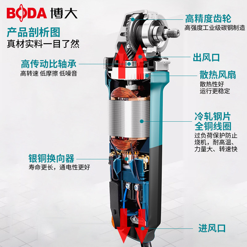 Boda angle grinder brushless electric grinding cutting polishing machine handheld home multi-function grinding machine hand grinding wheel