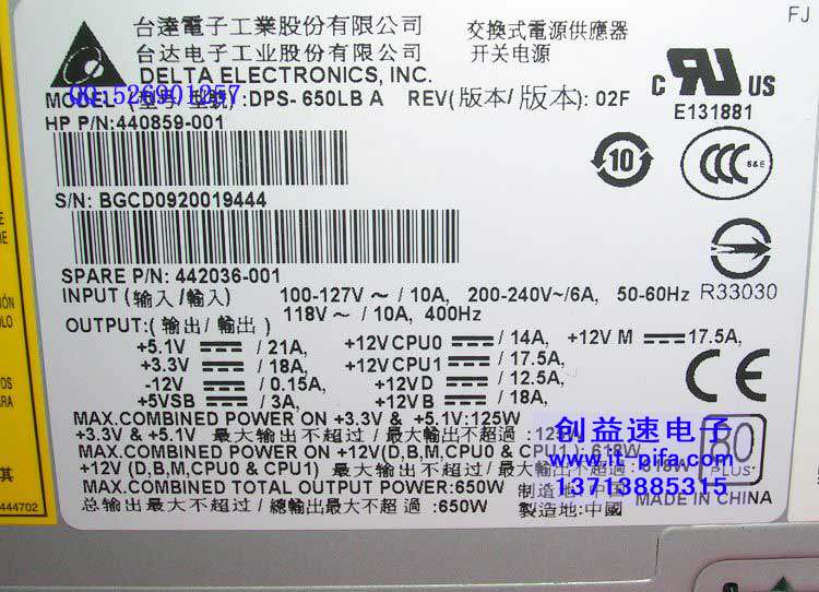HP original XW6600 power supply 442036-001 440859-001 DPS-650LB A650W