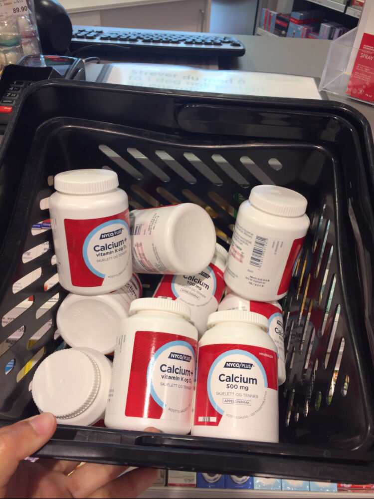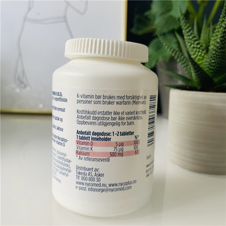 Norwegian pharmacy Nycoplus calcium tablets containing k and d adults with strong bone teeth