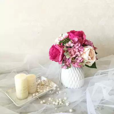 Special price every day Shuoxiang rose simulation flower Living room decoration White porcelain bottle Dining table Tea table Floral decoration European style