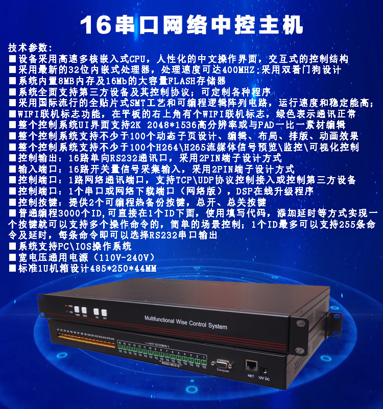 16 serial port network central control system Programmable design PAD central control system Projector central control system