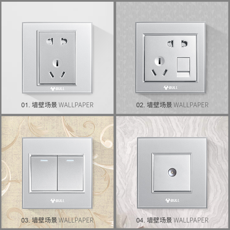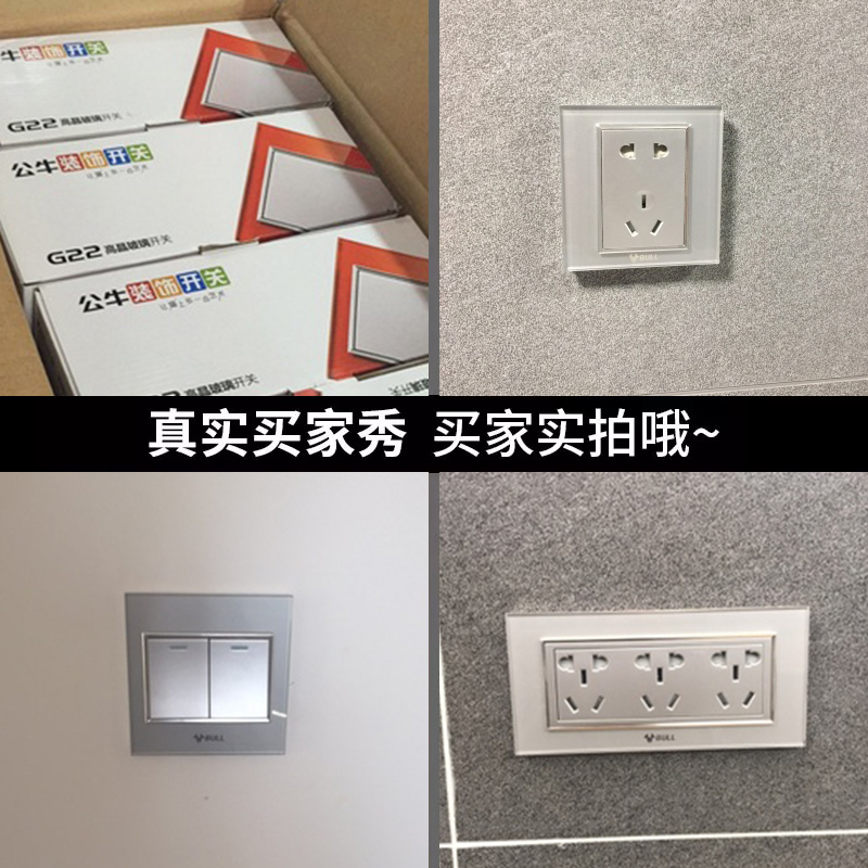Bull decorative switch socket high crystal glass crystal panel silver five holes g22 full moon silver household 86 type