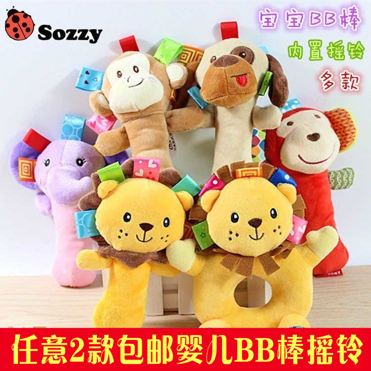 Baby animal BB stick Hand rattle Baby hand grab stick Baby hand doll Plush soothing doll 0-1 year old toy