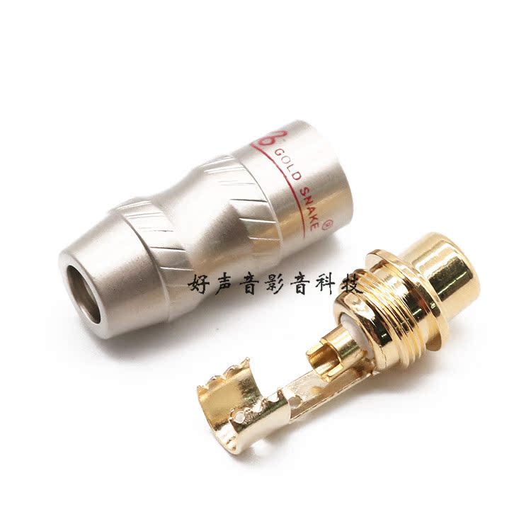 Snake king pure copper plated gold lotus female plug rca lotus female seat AV plug welding line female head wire hole 6MM