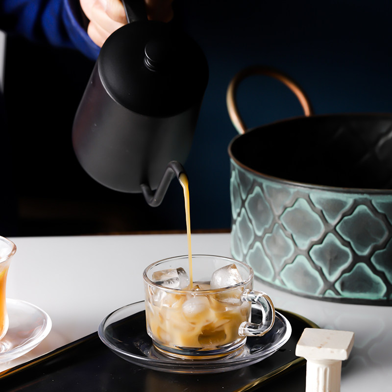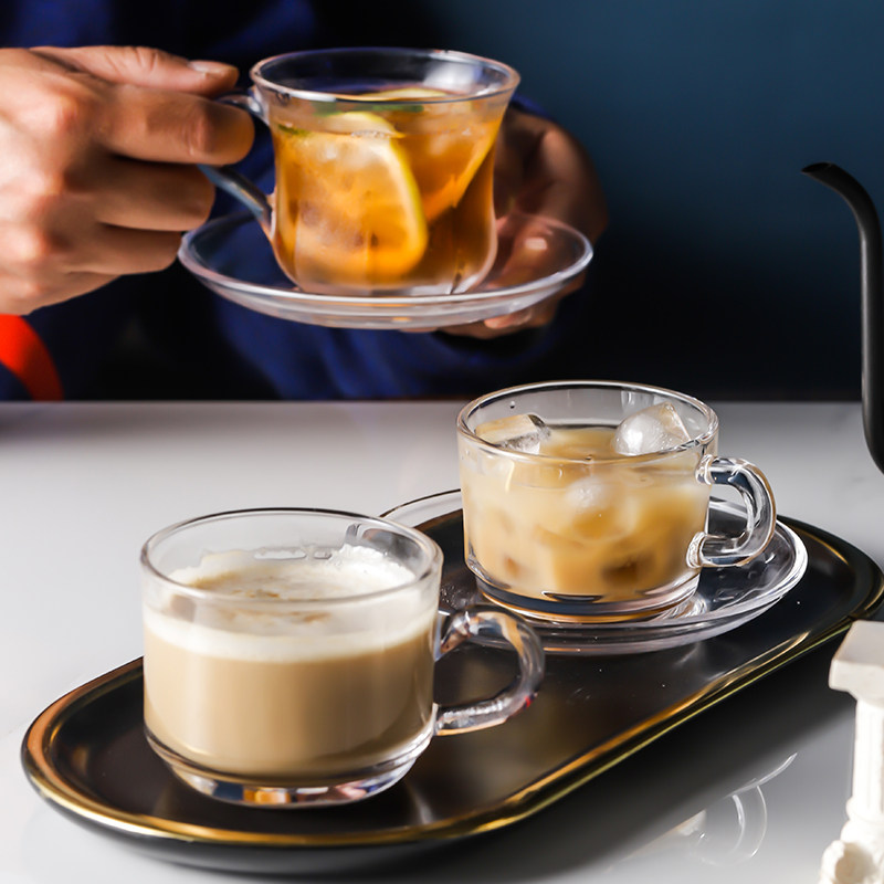 Glass coffee cup 200ml drink oat with cup flower tea cup Home Creative transparent water glass with handle spoon