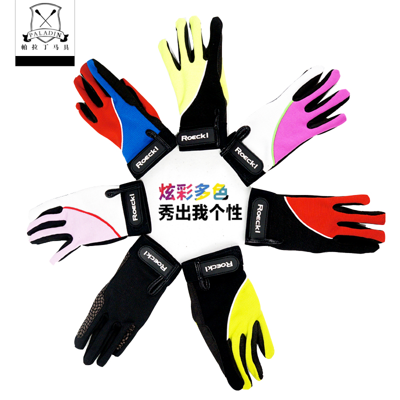 Color children's men's and women's equestrian gloves elastic breathable wear-resistant non-slip riding gloves PU leather material spring and autumn
