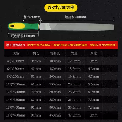 Hugong brand plastic handle flat file, file, large plate file, steel file, fitter file, flat flat file, flat file, 6-18 inch thick, medium and fine teeth