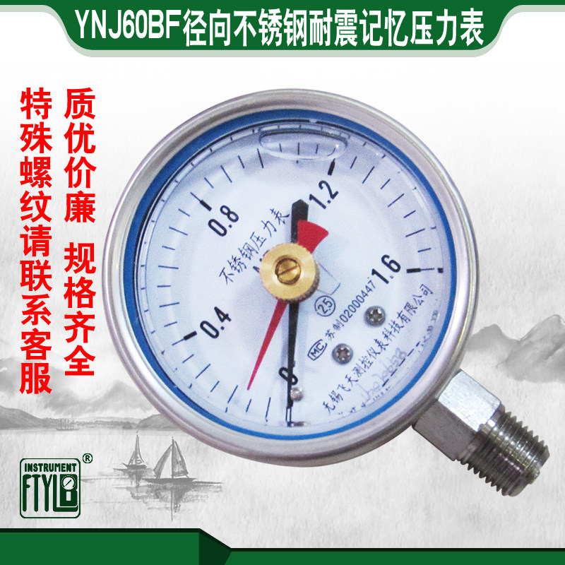 Wuxi Feitian FTYLB direct sales YNJ60BF1 6mpa shock-resistant stainless steel memory double needle pressure gauge