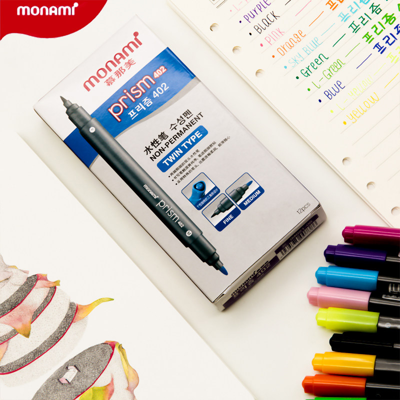 South Korea Muramami Monami 402 Double Head Hook Line Notes Pen Students Fine Art Water-based Pen Painting Color Pen