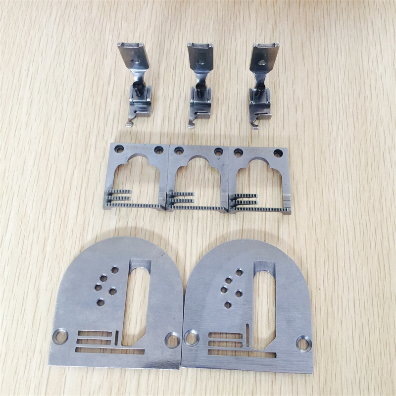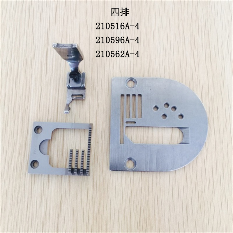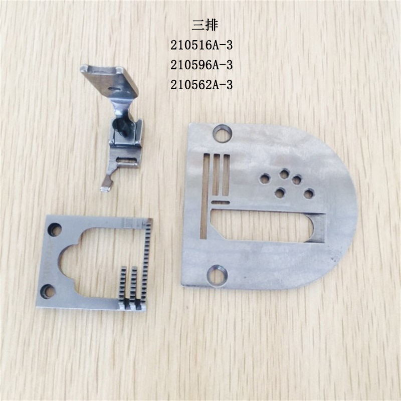 Three rows of pin boards one three rows of teeth One three rows of pins One three rows of pin plate teeth presser foot One set of four rows of needles One four rows of teeth One four rows of presser foot One four rows of needle plate teeth presser foot One set of five rows of needle plates
