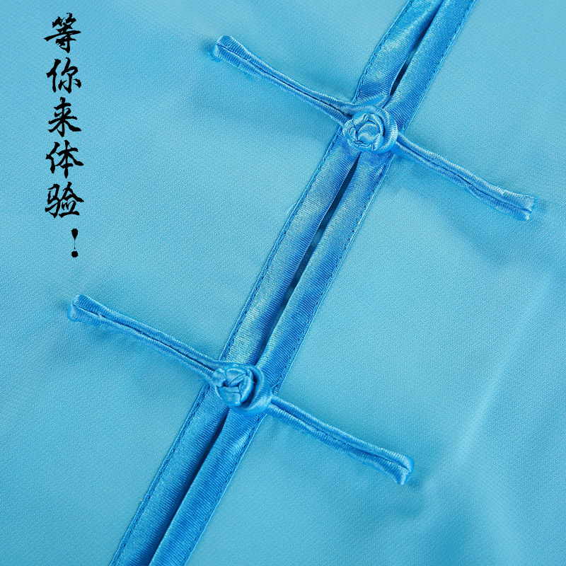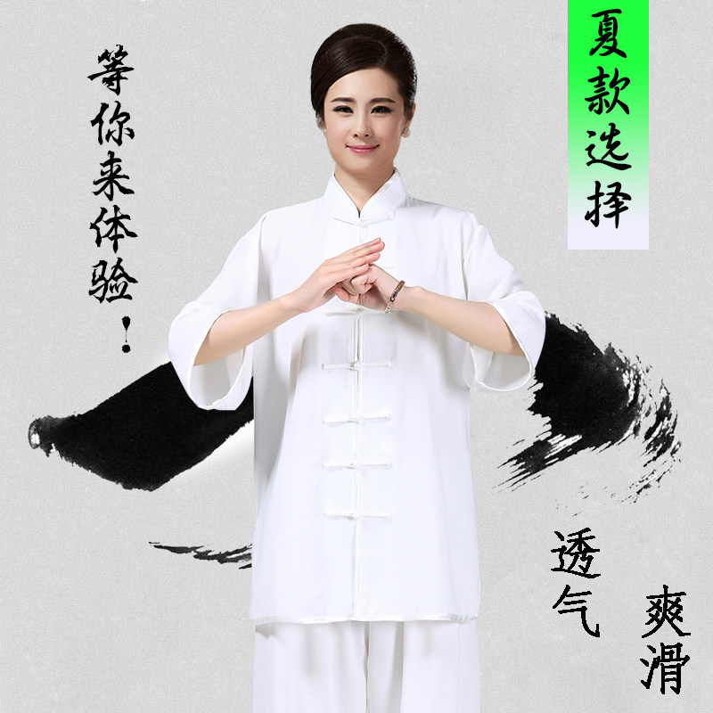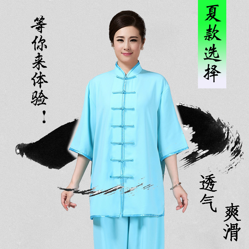 Men's and women's summer mid-sleeve tai chi suits cotton and linen yarn stand-up collar short-sleeved cotton plus silk exercises for middle-aged and elderly Tai chi fitness suits