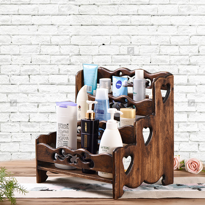 Bathroom rack solid wood retro washstand rack cosmetic storage rack makeup room storage rack multi-layer