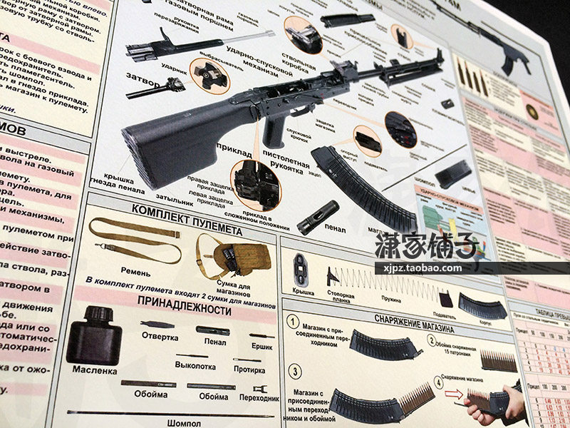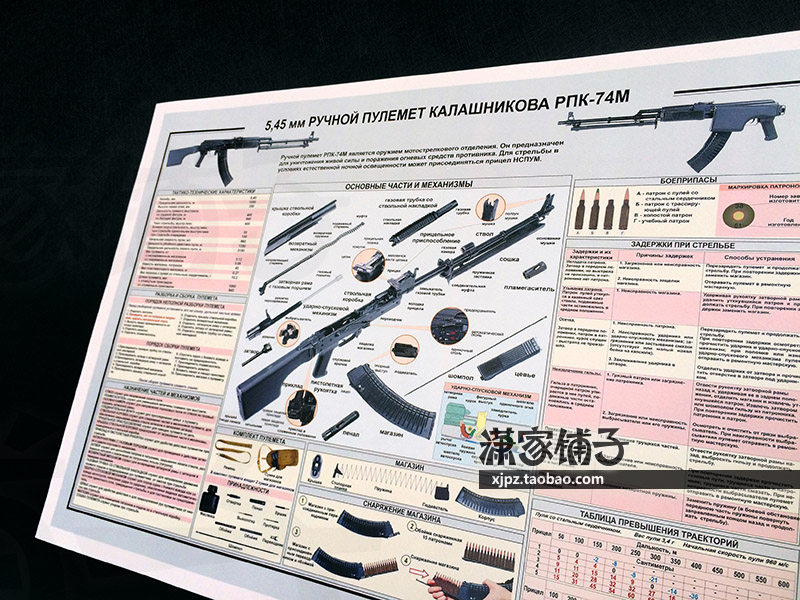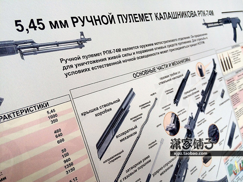 5 45mm automatic rifle light machine gun RPK-74M structure diagram weapon knowledge wall chart poster decoration painting