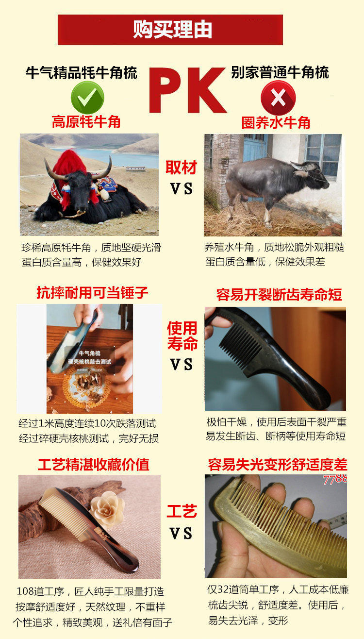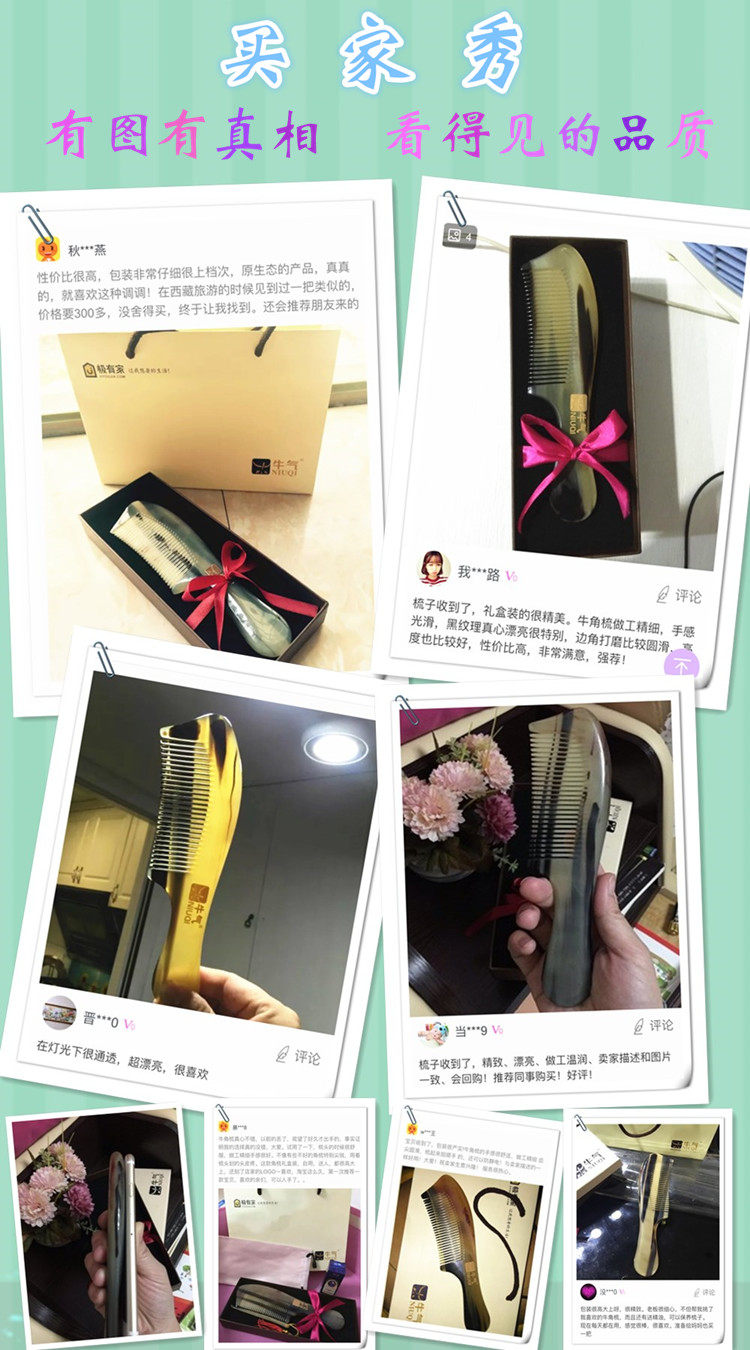 Bull Gas Natural Authentic Authentic Yak Horn Comb Defense White Hair Anti-Hair Anti-Static Health Care Wood Comb Lettering Companion Gift