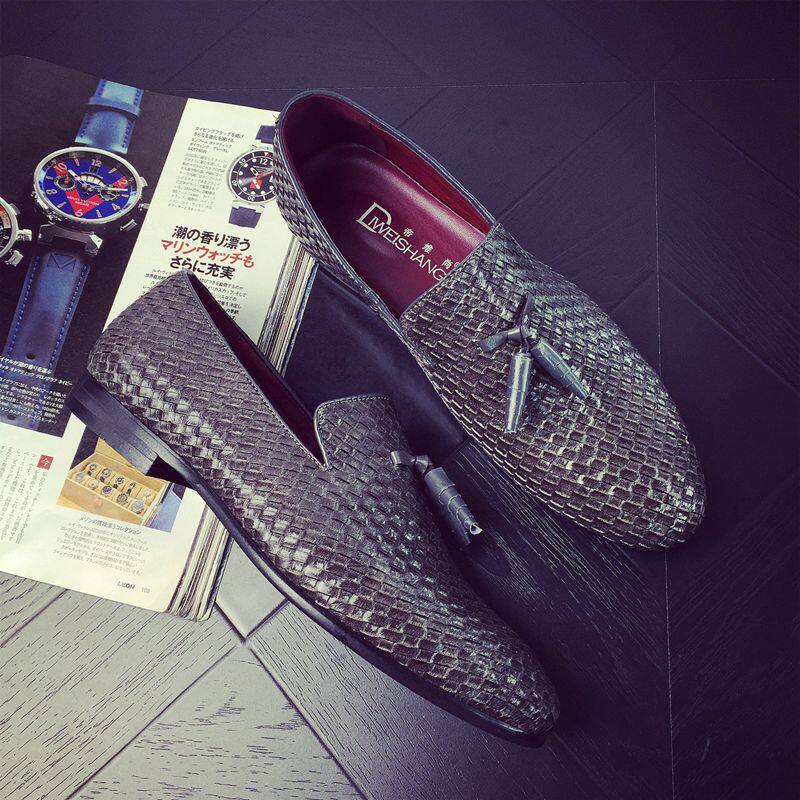 Bright Leather Retro Tide Men's Leather Shoes Fashion Plaid Yingren Pointy Leather Leather Shoes Sloth EUROPEAN AND EUROPEAN HAIR STYLE DIVISION SULE FORO SHOES