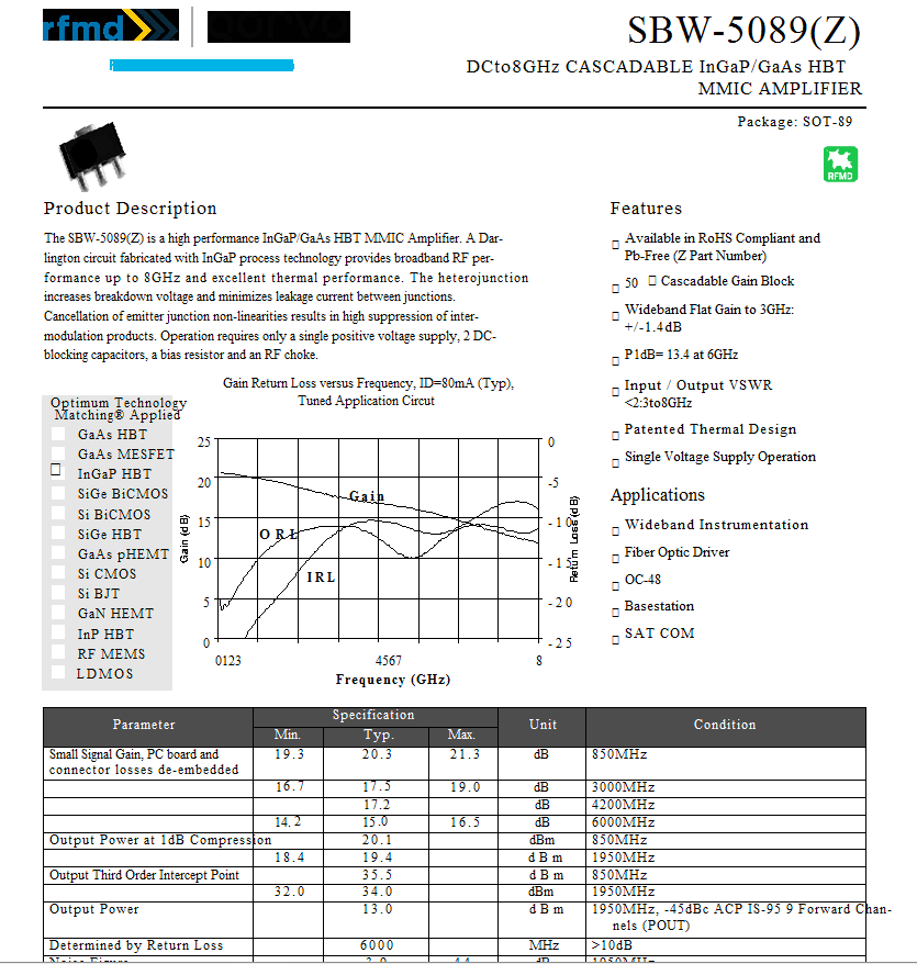 SBW-5089Z online version BW5 BW5 SOT-89 DC0-8G 6G DC0-8G RF broadband power gain amplifier tube