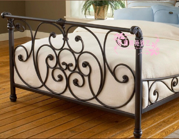 yD580 European Wrought iron bed High-grade iron bed frame Retro double bed 1 8 meters wedding bed Adult princess bed