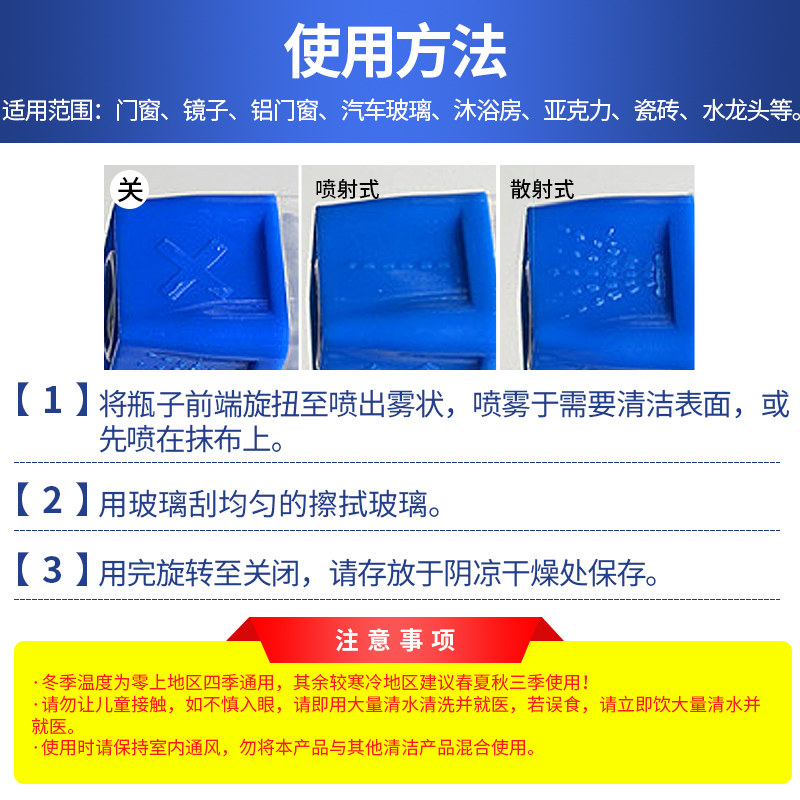 Glass cleaner Strong decontamination Bathroom shower room cleaning agent Glass cleaning water Household window liquid descaling scale net