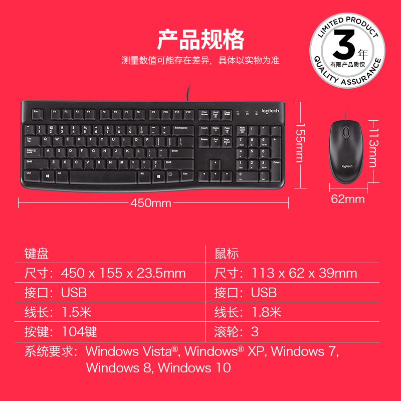 Logitech mk120 wired keyboard and mouse set notebook desktop computer keyboard mouse set home external device