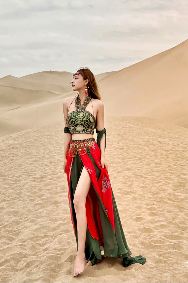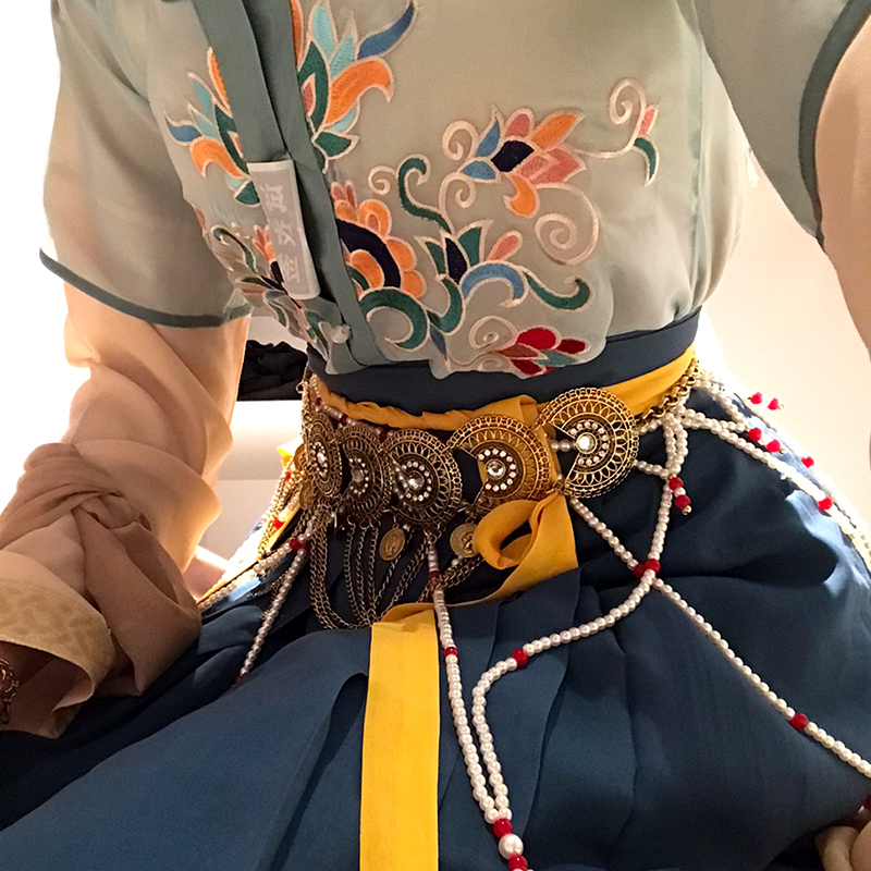 Dunhuang Ethnic Wind West Domain Metal Flying Sky Body Chain Dance accessories Flow Suhanfu Retro belly dance Waist Chain Woman