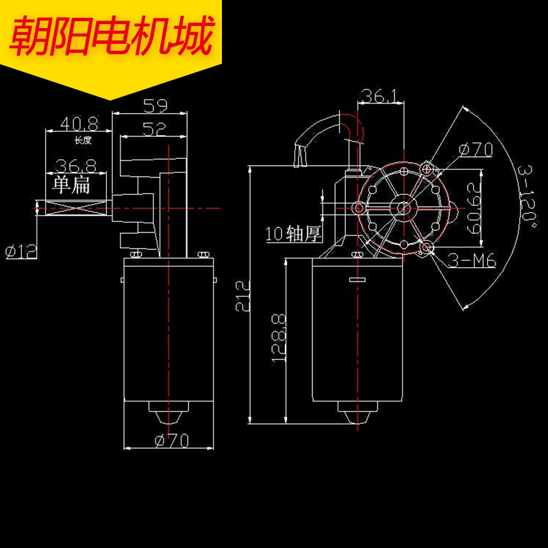 Chaoyang Motor City high-power worm gear DC gear motor 80w high speed single flat worm gear reducer