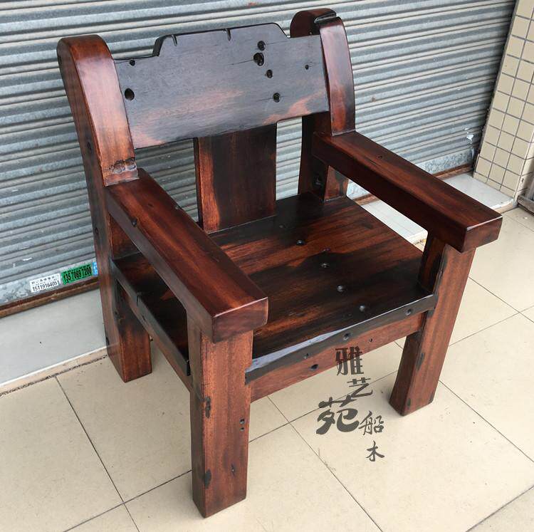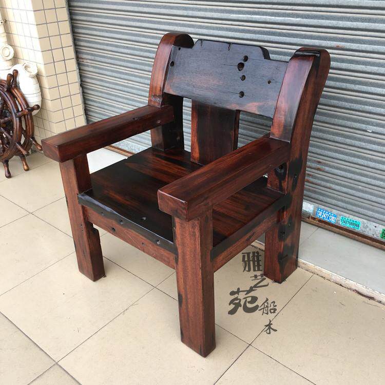 Old ship wood master chair outdoor leisure boss chair ancient ship wood office backrest master chair solid wood single sofa chair
