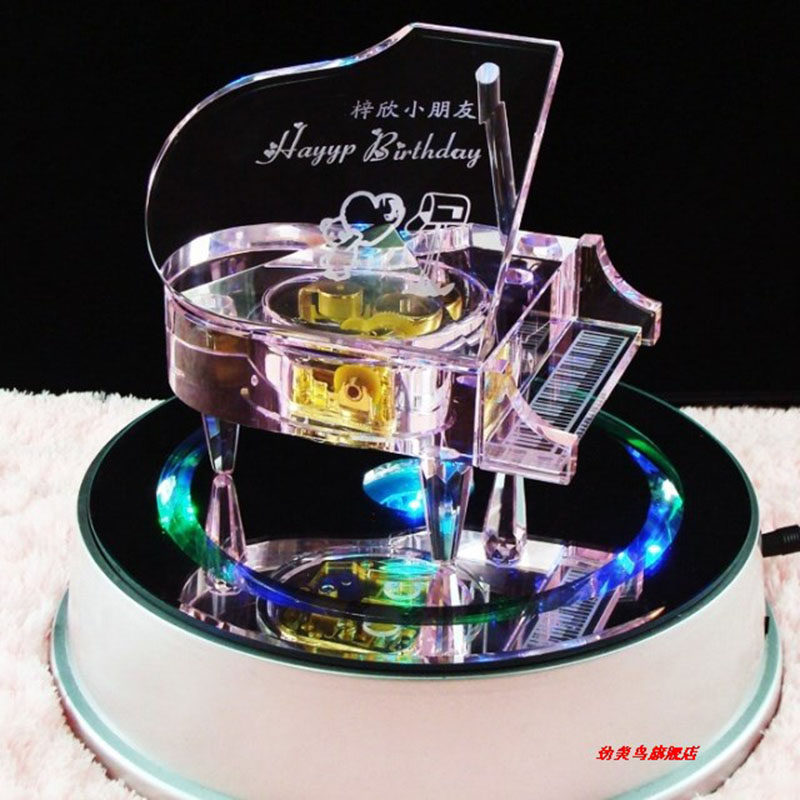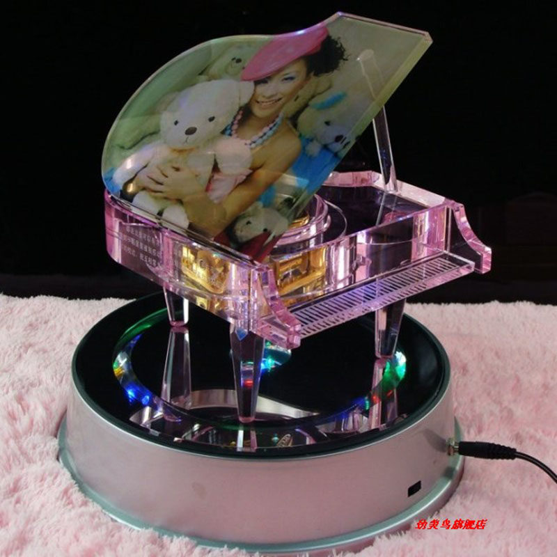 New colorful luminous rotating lamp holder crystal ornament base MP3MP4 wooden bluetooth music box rotating booth