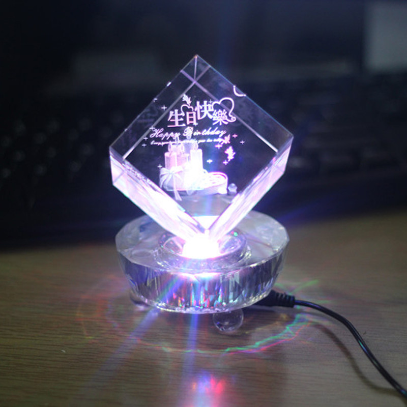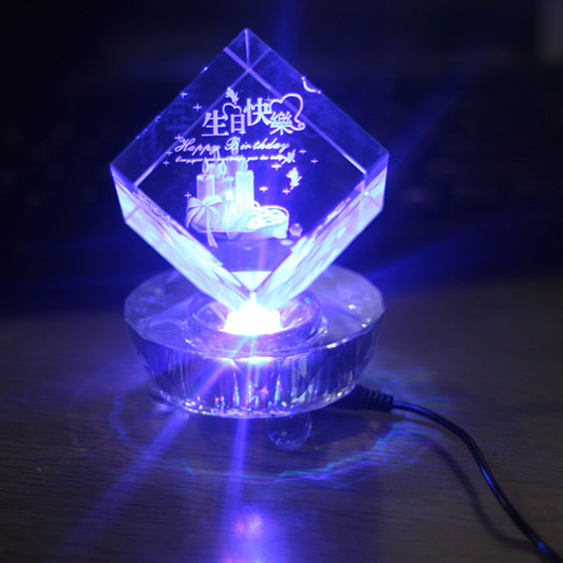 Crystal LED luminous base colorful lamp base Crystal glass jellyfish crafts plug-in base