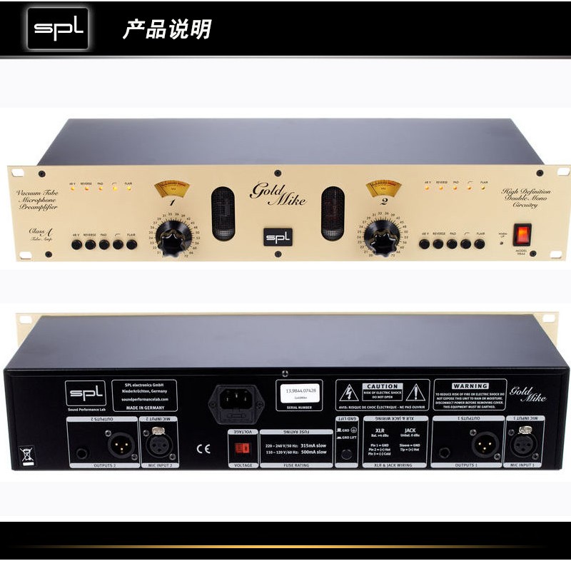 Licensed SPL Goldmike 9844 dual channel tube microphone amplifier spot