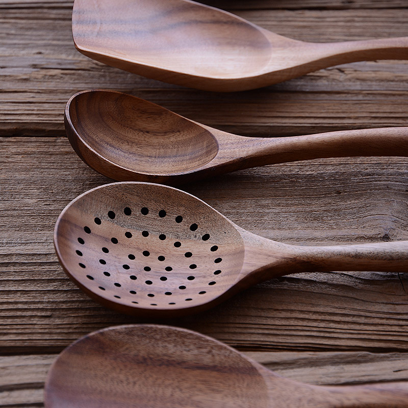 Thai Teak Wood Non-Stained Wood Spade Pan Shovel Leaking Spoon Rice Spoon Spoon Oil Spoon Stir Spoon Solid Wood Domestic Cookware