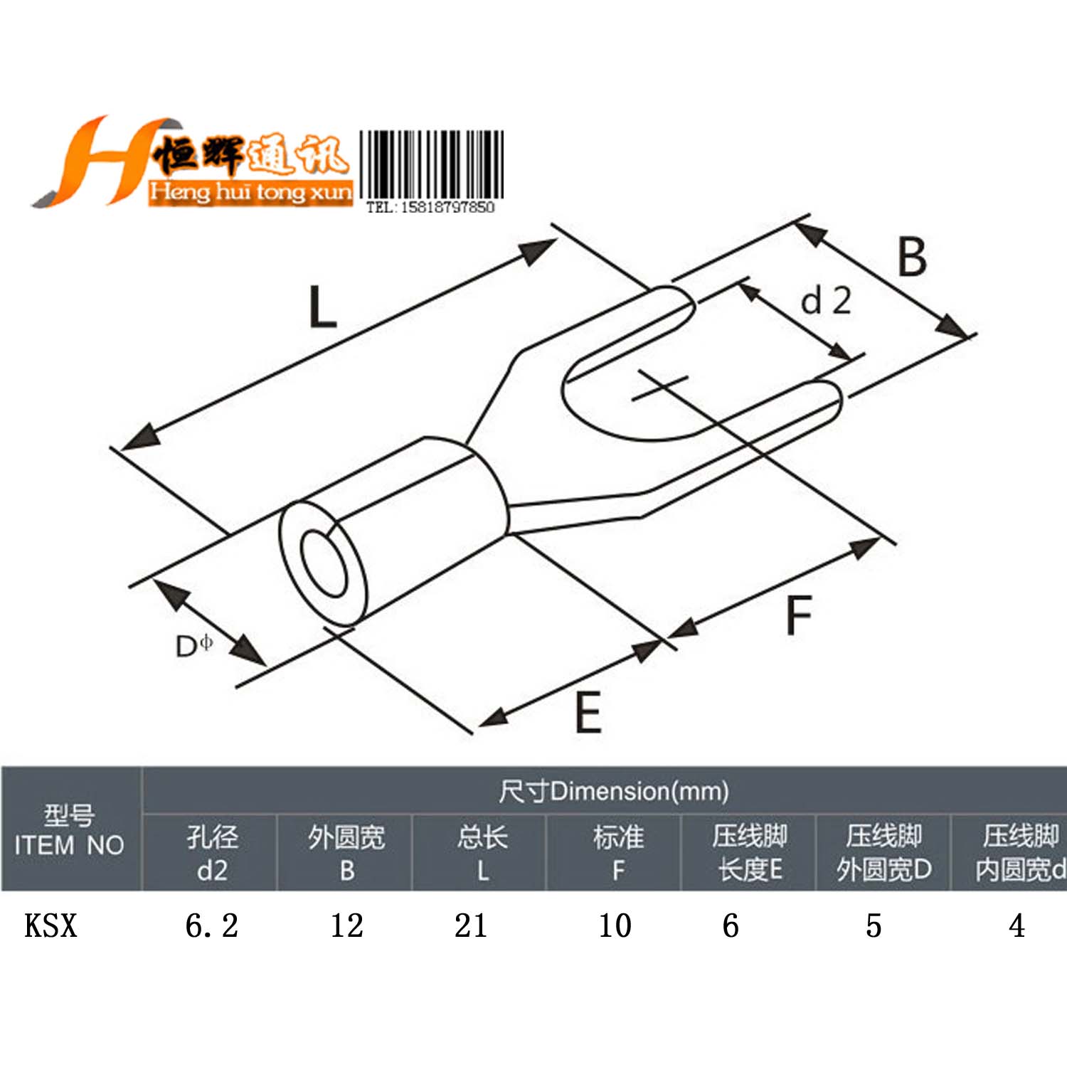 Car walkie-talkie stabilized power cord wiring cold-pressed terminal copper terminal RV3 5-6 copper fork 14~12AWG
