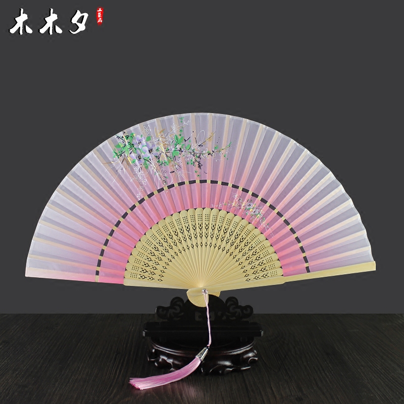 Mumuxi 6-inch summer women's fan folding fan double-section craft fan Chinese fan ancient style silk fan gift fan