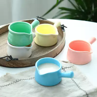Creative Korean single-handle ceramic milk jug Small measuring cup mini handlebar yogurt cup pudding cup mini jam Cup
