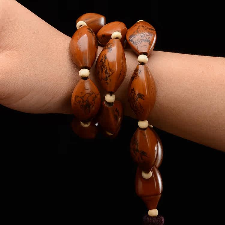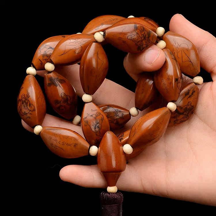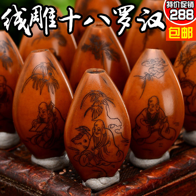 Nangong olive pit eighteen arhats long string olive pit line carving eighteen arhats Huang Xiaofeng line carving arhats L116