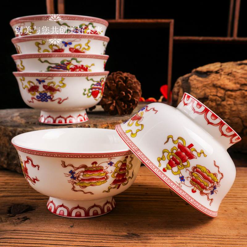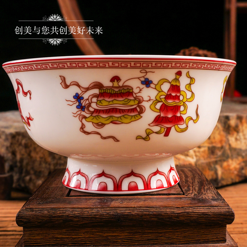 White Babao Mongolian bowl National style Tibetan ghee tea bowl High foot bowl Auspicious Babao rice bowl Tibetan bowl Tibetan flower tableware