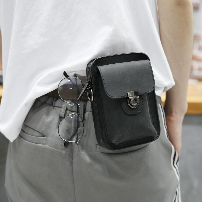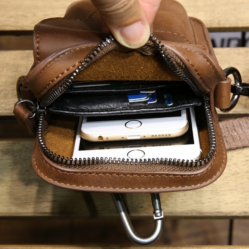 Men's Bag Mobile Pack Korean Version Men's Belt Bag Leather Bag Outdoor Casual Mini Hanging Bag Crazy Horse Skin Cigarette Pack