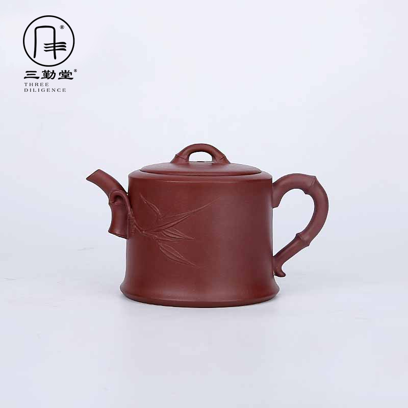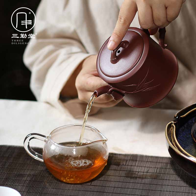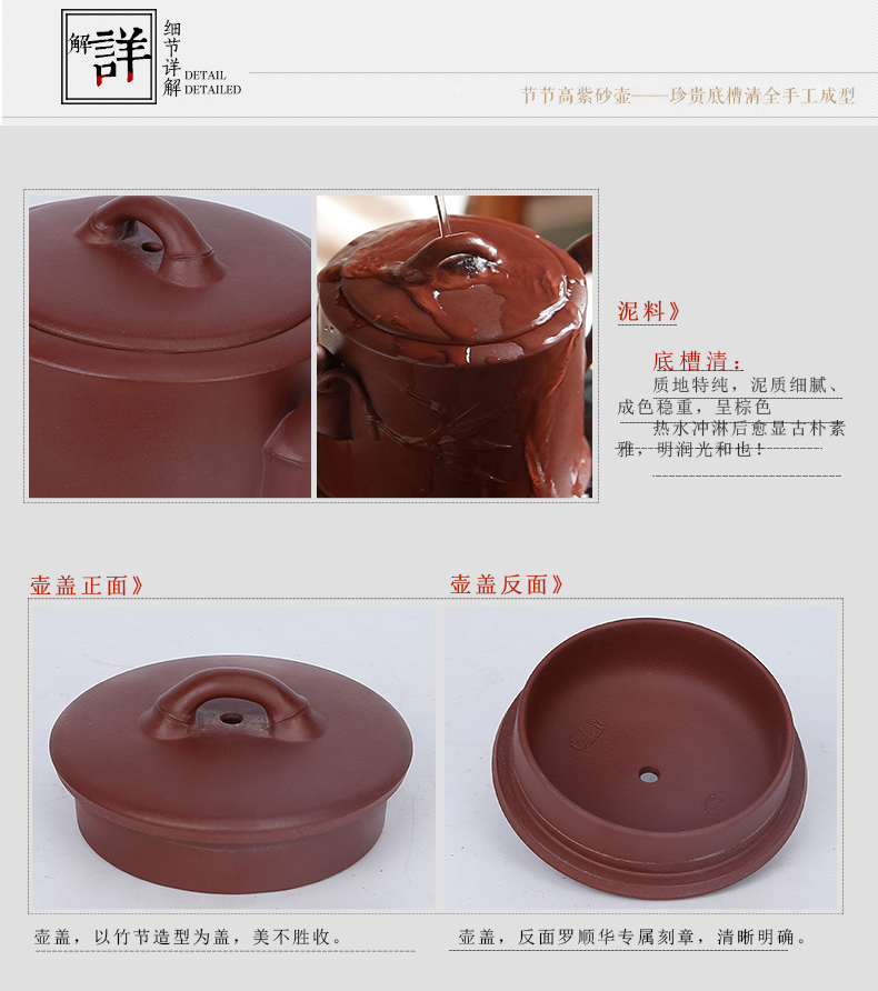 Sanqintang bottom trough clear purple sand pot Jiangsu Yixing original mine full hand carving famous hand bamboo jieguang high purple yarn